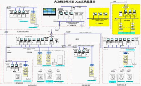 為提高企業(yè)全員勞動生產(chǎn)率,在冶煉廠工藝流程的主要車間——配料、AUSMELT熔煉爐車間及余熱鍋爐、制酸車間、發(fā)電車間、車間電解采用先進(jìn)的分散式計(jì)算機(jī)過程控制系統(tǒng)(DCS系統(tǒng))進(jìn)行監(jiān)控。