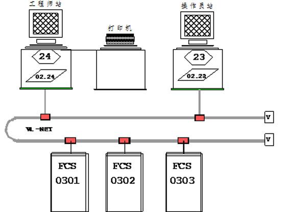 6000KW電站DCS控制系統(tǒng)由三個控制站、一個工程師站及一個操作員站構(gòu)成??刂葡到y(tǒng)構(gòu)成圖如下: