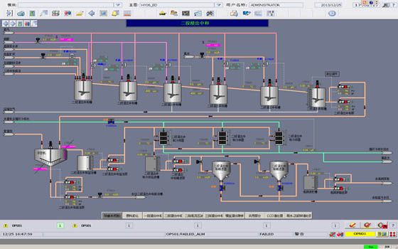 承擔(dān)該項(xiàng)目全廠自動化控制系統(tǒng)和工業(yè)電視監(jiān)控系統(tǒng)的設(shè)計(jì)、供貨集成、施工安裝及調(diào)試的全流程服務(wù)。在調(diào)試過程中,由于原料不斷變化、工藝流程不成熟,還沒有投產(chǎn)就開始了改造。中國恩菲快速響應(yīng),幾乎在業(yè)主完成工藝改造的同時完成了組態(tài)畫面和控制邏輯的相應(yīng)修改,保證了業(yè)主試生產(chǎn)的順利進(jìn)行,得到業(yè)主充分認(rèn)可。