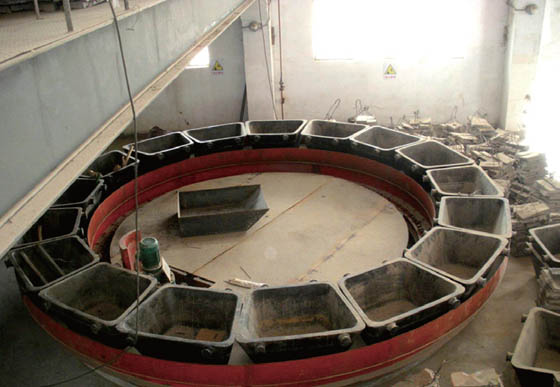 自主開發(fā)產品,由傳動裝置、圓盤、錠模等組成,能將熔煉爐放出的高溫熔融粗鉛澆鑄成約2t/ 塊的鉛錠。
